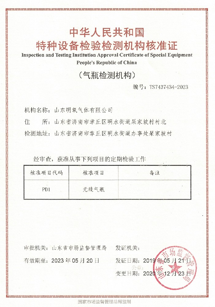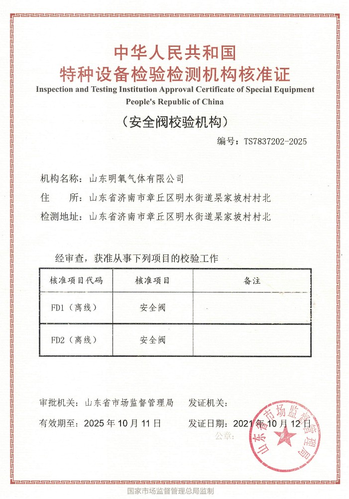 ??? 山東明氧氣體有限公司的前身為始建于1993年的章丘市明水氧氣廠,2020年12月企業(yè)由民營獨資轉型升級為山東明氧氣體有限公司,企業(yè)進入新的發(fā)展階段。公司位于山東省濟南市章丘區(qū)明水街道杲家坡村村北,占地面積4000平方米,注冊資金500萬元,固定資產投資3000萬元,主要經營項目為醫(yī)用氧氣、工業(yè)氧氣、氮氣、高純氮氣、氬氣、高純氬氣、高純氦氣、二氧化碳、混合氣體等各種工業(yè)氣體、高純氣體、混合氣體的充裝銷售、各類氣瓶的銷售、安全閥校驗、鋼質無縫氣瓶的檢驗等。